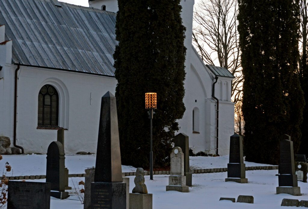In Lund, on the southern tip of Sweden, Stora Råby Church and its surrounding churchyard form a quiet, historically significant environment. When the parish decided it was time to replace the old globe luminaires, the ambition was clear: create a new lighting installation that respected the site’s cultural heritage while introducing modern performance and control.
